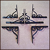 Koiramaisia kulmarautojaTukirautoja rantamökin makuuparvelle nousevan tikapuun kiinnitykseen.